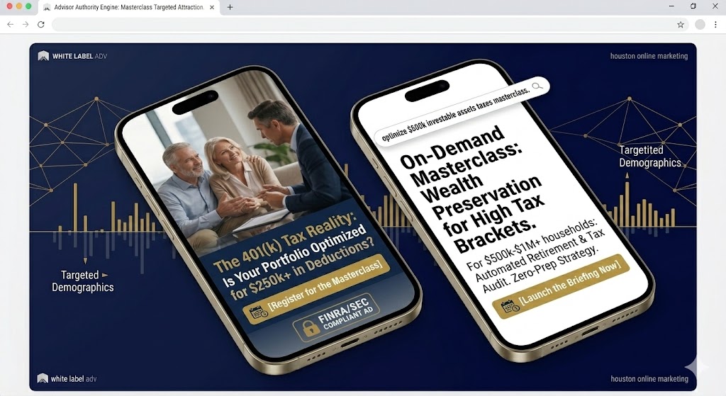 We don’t optimize for clicks; we optimize for Asset Density. Our compliance-locked ad strategies are engineered to attract households with $250k–$1M+ in investable assets while repelling “tire-kickers” before they cost you a cent.